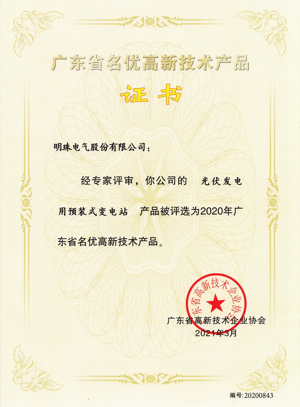 近日,明珠電氣自主研發(fā)的“光伏發(fā)電用預(yù)裝式變電站”產(chǎn)品,憑借先進(jìn)的技術(shù)性能水平、優(yōu)質(zhì)的產(chǎn)品質(zhì)量和良好的經(jīng)濟(jì)效益等綜合實(shí)力,成功獲得“2020年廣東省名優(yōu)高新技術(shù)產(chǎn)品”稱號(hào)。